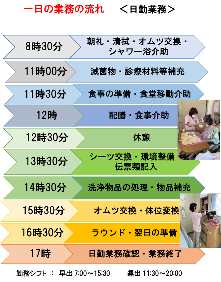 - 勤務体制 日勤 夜勤:3交代・2交代制